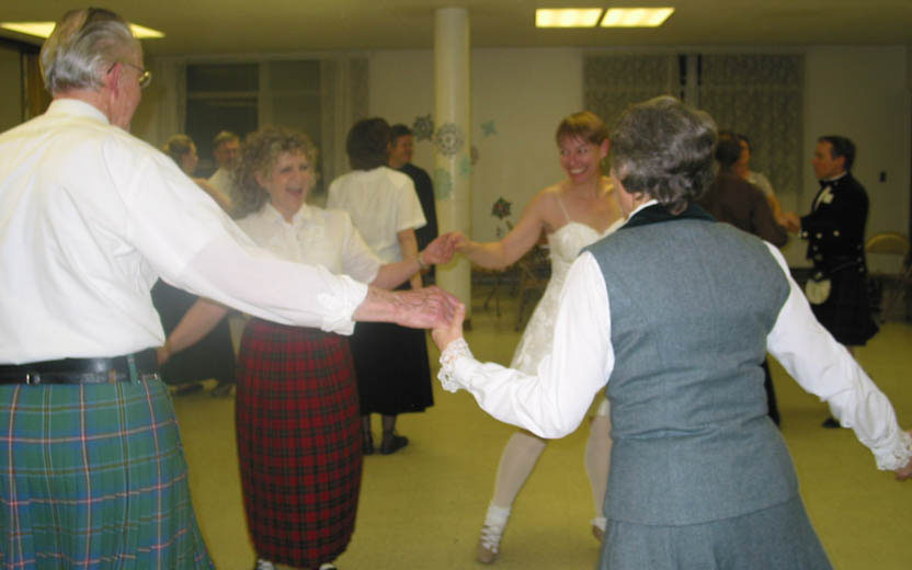 Editor's note: Over the next few issues, we will be publishing a number of articles about the history of the Scottish Dance group in Vancouver. We thought this would be especially interesting to the newer members (like me!). We begin the series by reprinting the first such historical article, from the September/October 1996 issue of the Scottish Country Dancer. 1978: Fred and Marge van Nus "moved house" from Waterloo, Ontario, Canada, to Hillsboro, Oregon. Since they were Scottish country dancers, they went searching for others with a similar inclination; they found (1) Ian and Florrie Milligan, who sponsored monthly dances in Beaverton, and (2) a folk dance group that sponsored a SCD class once a month, taught by Noel Lilly of Seattle. About that same time, Sally McNair, another avid dancer, moved West and found them. 1980: In March, Fred and Marge moved to Vancouver, Washington, and Marge offered to teach SCD for Parks and Recreation. 1981: The first class began in January. Twenty-two pairs of "happy feet" bounced the floor in the Oak-Elm Room at the Marshall Center. The class was under the wing of the Seattle Branch of the Royal Scottish Country Dance Society, and its news was published in the Puget Scot newsletter. Before the new dancers even heard the word "strathspey," they were asked to dance at a festival on February 21 in the Rudy Luepke Center. They held their first social dance on May 2 in the Luepke Center. They also established a Scottish Country Dance Spark Plug Award and presented the first one to Ian and Florrie Milligan. 1982: The Vancouver class received its first invitation to dance at the Fort Vancouver Brigade Encampment. Fred and Marge were out of town, so their daughter, Linda, home for the summer, handled the organization and did substitute dancing while Charlie and Juanita Vernon led the dancers "center stage" out in the "wilderness" of the Fort. 1983: Portland-based dancers had swelled the group, so they made a great show of SCD at such events as the Burns Supper, United Nations Folk Fest, Skoal International Film Fest, and the Vancouver July 4th celebration. They were introduced to the Friendship Force, dancing for and with them. Social dances continued at the Luepke Center and Kelso resident Sarah Deatherage attended. She frequently begged Marge to "please teach SCD in Kelso." The Kelso Highlander Festival Committee invited the group to dance at both the stadium during the day and the evening ceilidh at the Thunderbird (now Red Lion) Inn. They included audience participation that evening, where they met Hugh and Pat Ingram, who also begged Marge to teach in Kelso. At the same ceilidh, they met Malcolm (Calum) MacKinnon and a harper from Seattle who delighted the audience with Scottish music. 1984: SCD classes began in Kelso in January. Marge taught with Sally McNair as her adjunct. Vancouver USA Scottish Country Dancers was formed as an affiliate of the Royal Scottish Country Dance Society. They were no longer under the Seattle Branch. Portland-based dancers formed their own demo team. Gary Thoen of Kelso volunteered to edit, print, and distribute the Scottish Country Dancer; the first issue was published in June. They added Queen Victoria's Birthday celebration at Fort Vancouver to their list of demos. Kelso dancers joined for Brigade Encampment. For the McLoughlin House Family Celebration in Oregon City, they produced their own "Dr. McLoughlin" -- alias Kevin Scott. After whirling through all dance levels in class, Lisa Fiske-Sharp took the final step to join the teacher candidate class in Seattle. With regular classes on-going in Vancouver and Kelso, three certificated teachers, and a full schedule of social events and demonstrations, the Vancouver USA Scottish Country Dancers were solidly established. | ||||||||||||||||||||||||||||||