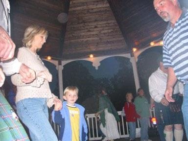 The annual Scottish workshop and dance weekend held at the Fort Worden State Park was a resounding success. An aeronautical decoration theme featuring kites and balloons to airplanes and spacecraft and devised by Judi McDougall, Tonna Kutner, and Elizabeth Miller set the backdrop to a weekend of wonderful music and dancing. We welcomed back favorite musicians Muriel Johnstone and Calum MacKinnon and were introduced to a new fiddler, Laura Risk. The musicians played for the evening dances as well as for the classes. The teachers, Ruth Jappy, and Bruce and Jo Hamilton, improved our Scottish Country dancing and taught fun alternatives such as English Country, Step, Quadrilles, and Shetland. The Friday evening dance included three dances honoring the teachers, each of whom has had a dance written for them. While a majority of the participants were from Seattle, Victoria, and Vancouver, BC, and places in between, it was fun to see contingents from Vancouver, WA; Reno, Nevada; and Santa Fe, NM, as well as representatives from Oregon, California, Alaska, Illinois, and Massachusetts. The planning committee for the weekend consisted of Susan Brady, Registrar; Eileen Hsu, Teacher and Program Coordinator; Calum MacKinnon, Music Coordinator; Ross Morrison, Treasurer; Adeline Crinks, Edna MacKinnon, Judi McDougall, and Elizabeth Miller. Next year will be the 30th Fort Worden weekend, which will be held on the 10th through the 12th of September, 2004. It should be an extra special occasion. This article is from the November/December 2003 issue of the Puget Scot, the newsletter of the Seattle Branch, Royal Scottish Country Dance Society. | ||||||||||||||||||||||||||||||
