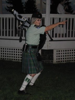 Participating dancers, planners, costume designers, and family members were: Eunice Mackenzie, Susan Shaw, Sandy Mackenzie, Katherine Mackenzie, Katie Wells, Emily Wells, Alasdair Stuart, Duncan Stuart, Marge van Nus, Fred van Nus, Geri Stuart, Robert Stuart, Gayle Graham, Liza Halpenny, Tom Halpenny, Linda Mae Dennis, Martin Mackenzie, Colleen Wells, Vicki Adams, and Mary Stevens. Geri Stuart wrote the script for the "Piper of Ft. Vancouver", adapted from "The Piper of the Cave of Kenavara". The Piper played such a stirring dance with audience participation at the Ft. Vancouver Gazebo that the dancers praised the piper profusely. The piper became so confident in her abilities that she decided to challenge the Little People themselves, who lived under a tree nearby. The dancers were shocked, and pleaded for the Piper not to go. It can be dangerous to challenge the Little Folk! But the piper could not be dissuaded, and marched with her black dog towards the home of the Little People. A door appeared and the Little People welcomed the piper and her dog inside. The dancers waited all night, and in the morning the door reappeared and out ran the howling dog who had turned white with fright. There was no trace of the piper. The Little People were so enchanted by the Piper's playing that they decided to keep her there forever. From that day forward, the soft sound of pipes could be heard as the piper's ghost wandered underground struggling to find the door out. The troupe performed the skit every 15 minutes, and the show improved with each performance. Audiences enjoyed the dancing. Thanks to all who participated! | ||||||||||||||||||||||||||||||