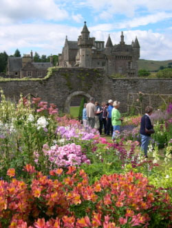 The ruins of the abbey, where Tam first spied the witches dancing "hornpipes, jigs, strathspeys, and reels," are just a short walk from the bridge, and in the graveyard there we saw the graves of Robert Burns' mother and father, who both outlived Robert by many years. It seems that all of Scotland loves Burns, and in Ayrshire he is everywhere. I loved the museum next to his birthplace cottage, which has an extensive collection of his original writings, including handwritten letters and tributes to friends written in perfect English as well as works in his native Scots tongue. In the lowlands we visited the home built by Sir Walter Scott, the great historic fiction novelist, who loved to collect books as well as memorabilia from famous warriors and anything Scottish, including Rob Roy's sword and gun, Napoleon's journal and pen set, and full suits of armor from the 16th century. We all loved his walled flower garden, which was my favorite of all the gardens on the tour. So, you get the idea that Scotland is a great place to visit, especially in August when the weather is the best, though the prices are the highest then - except for cashmere, of course. When all the pictures are developed and sorted, we'd love to share. | ||||||||||||||||||||||||||||||