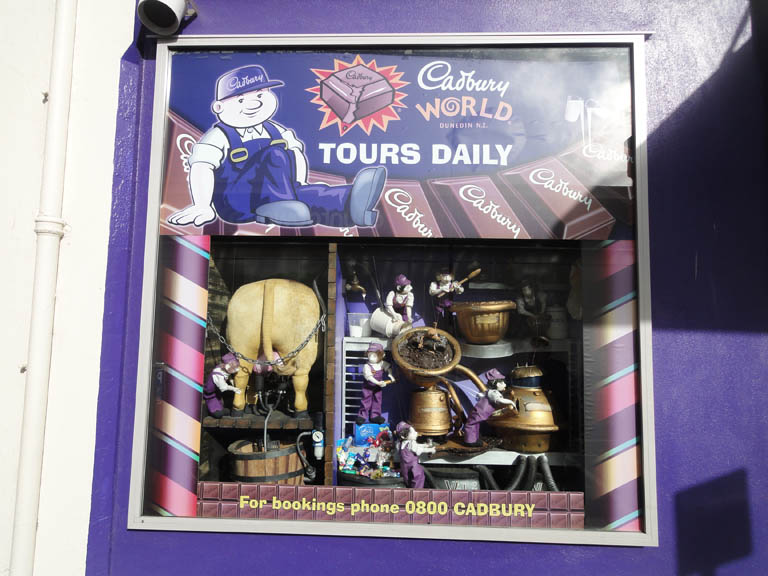 The Cadbury chocolate factory is located near The Octagon. The public entrance has an impressive display resembling a mountain constructed of 22,000 brilliant gold-foil Crunchie bars.