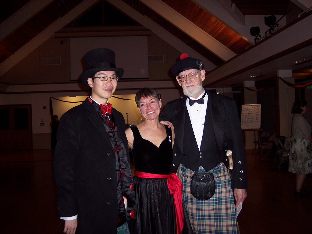 It seems like yesterday that we were attending the 2012 workshop and ball and yet it's now been over a year ago, and the 2013 ball has also come and gone. This year's ball lacked the excitement of last year's (although panic might be a better word considering both teachers at one point or another in their travels to Portland experienced weather delays and were unsure as to whether or not they would arrive in time). That experience provided a valuable lesson: it's best to have at least one of the teachers within driving distance, just in case. This year, Jim and Lea Maiolo, along with their adorable daughter Jasmine, made the trip from Seattle to teach at the workshop. Jim started the morning with the intermediate dancers and Lea taught the newer dancers. The usual routine is for each teacher to teach one level in the first session and then the other level in the second session, followed by a combined class with both groups and both teachers. However, Jim became ill in the early afternoon and was unable to continue so Lea took over for the last class of the day. The dancers enjoyed both the teachers and the trickier dances they brought with them. A couple of the dances became even more challenging when danced in a seven-couple set, which is always a good recipe for hilarity.