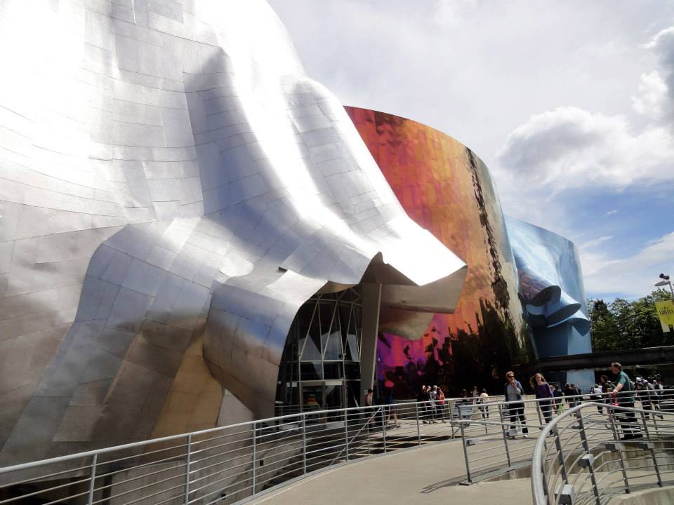 We explored the architecturally unique EMP Museum building with its colorful and curvy surfaces. The former name of the EMP Museum was Experience Music Project and Science Fiction Museum and Hall of Fame. A rock concert was in full swing as we cruised the cavernous interior.